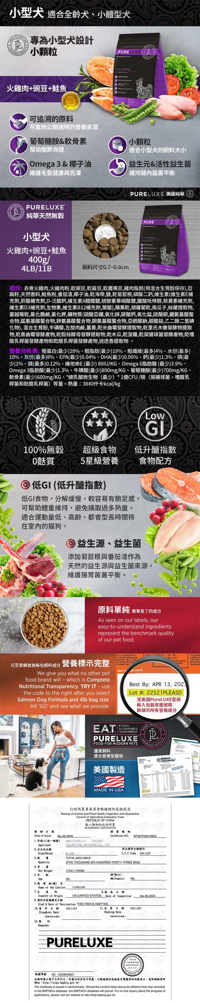 | 商品名稱 | 小型犬糧-火雞肉+豌豆+鮭魚 |