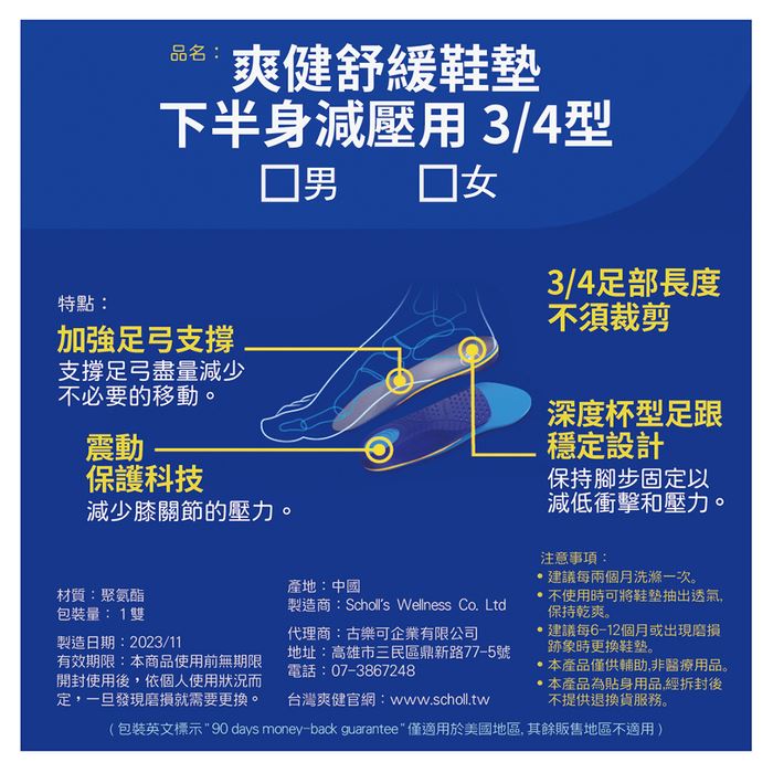 | 商品名稱 | 【Dr.Scholl"s 爽健】下半身減壓舒緩鞋墊(女用3/4型) |
