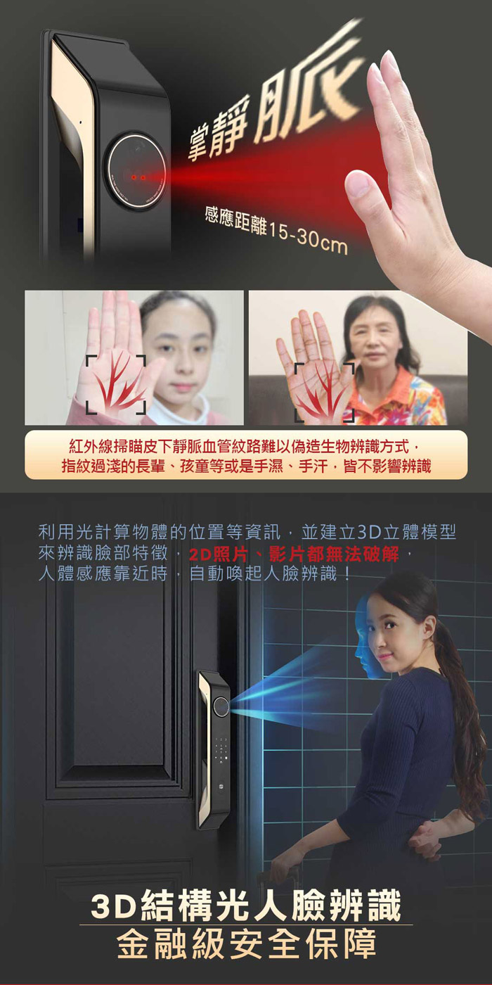 ◆掌靜脈辨識,擺脫指紋淺、手汗困擾。