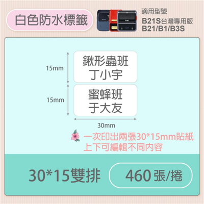 | 內容物 | B21系列標籤貼紙|白色30*15 雙排|五入 |