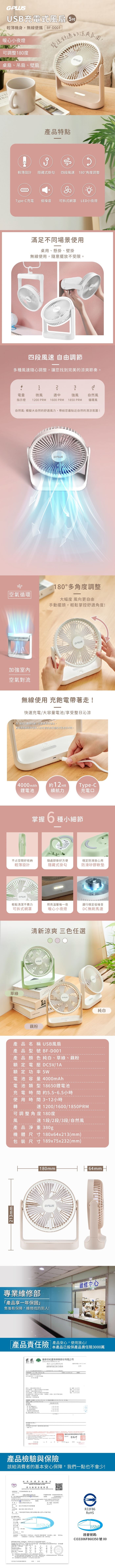 | 商品名稱 | GPLUS拓勤 5吋USB充電式風扇三色可選 BF-D001 |
