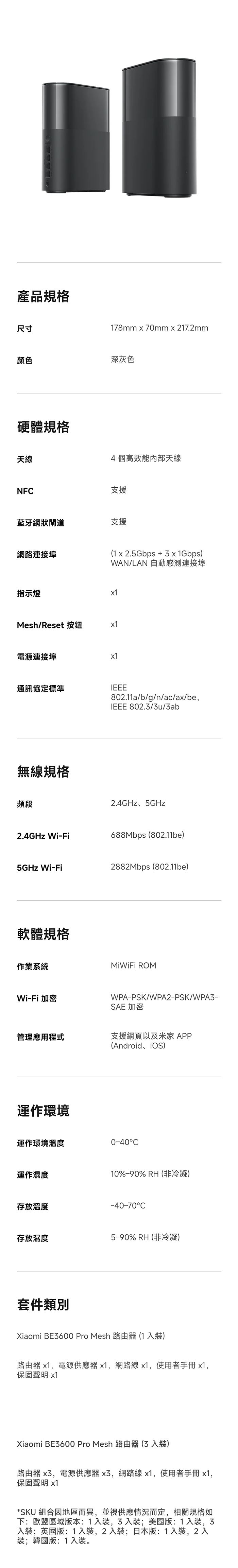 | 【商品名稱/型號】 | Xiaomi BE3600 Pro Mesh 路由器 [1件裝] |