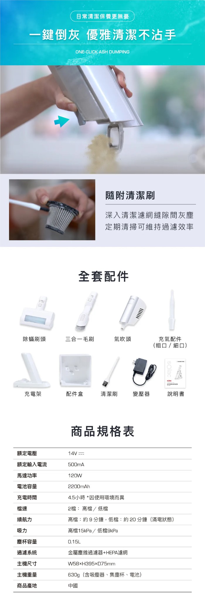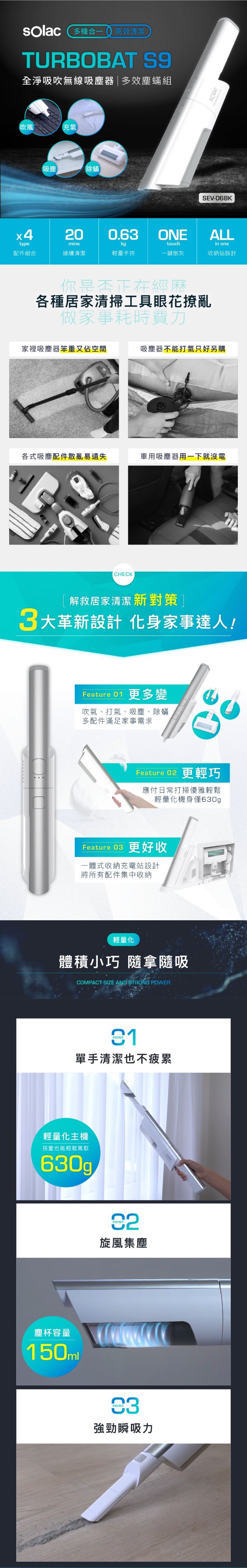 | 商品名稱 | SOLAC S9 全淨吸吹無線吸塵器|多效塵螨組 SEV-068K |