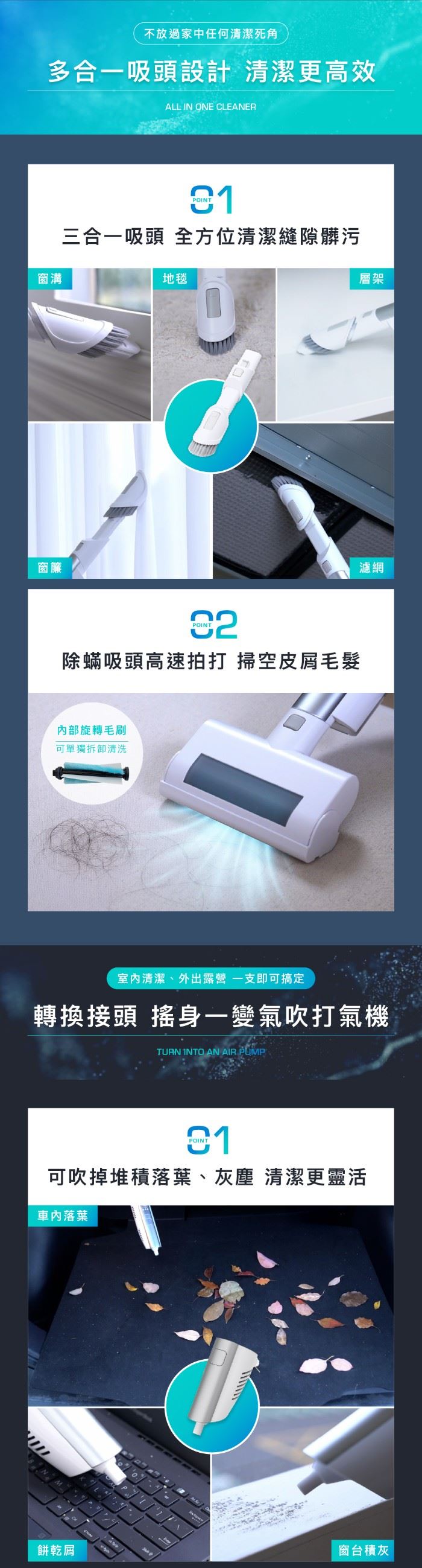 7.吹氣 / 打氣 / 吸塵 / 除螨 多配件滿足家事需求