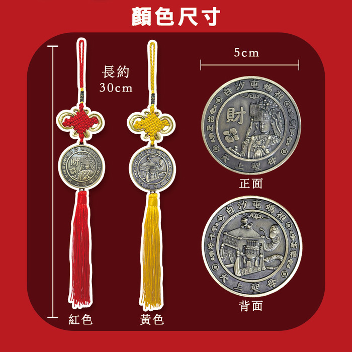 內含:平安吊飾(紅/黃隨機出貨) + 開運金錢母
