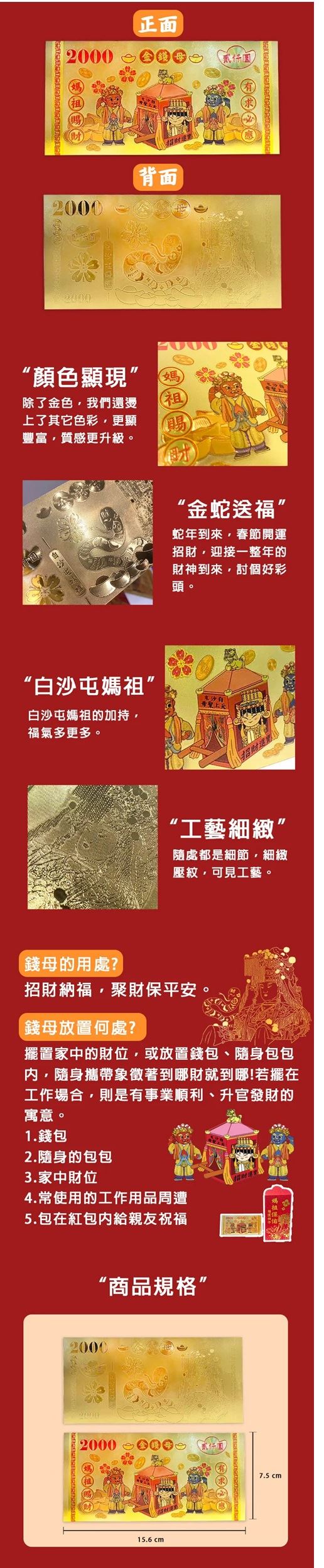 | 商品名稱 | 【花太太x白沙屯媽祖】蛇年限定開運組(內含:平安吊飾(紅/黃隨機出貨) + 開運金錢母 |