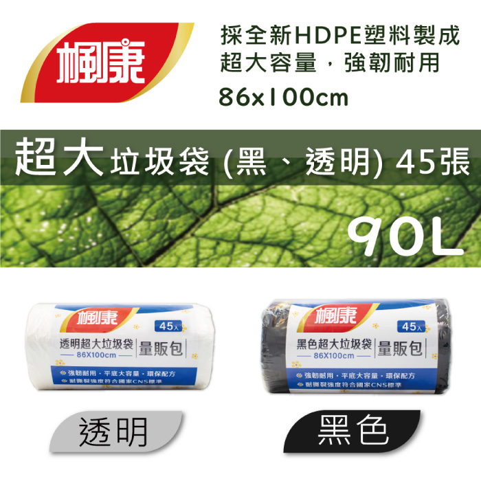 | 商品名稱 | 【楓康】超大垃圾袋量販包86x100cm 45張(透明) 三件組 |