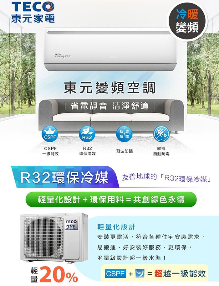 【TECO 東元】11-14坪 R32二級變頻冷暖分離式空調(MA80IH-HL/MS80IH-HL 含基本安裝) |