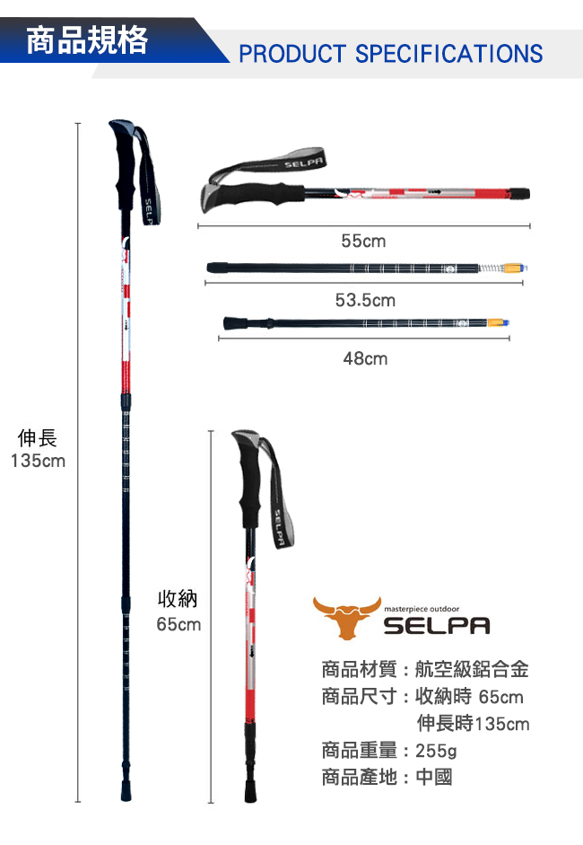| 【商品名稱或型號】 | 【韓國SELPA】雲頂7075鋁合金避震登山杖 [2入超值組] |