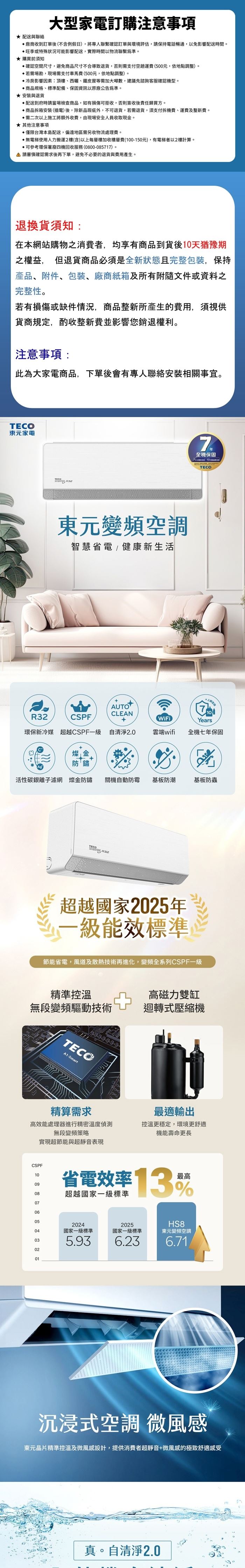 【TECO 東元】頂級7-8坪 R32一級變頻冷專分離式空調(MA/MS50IC-HS8)(含基本安裝) |