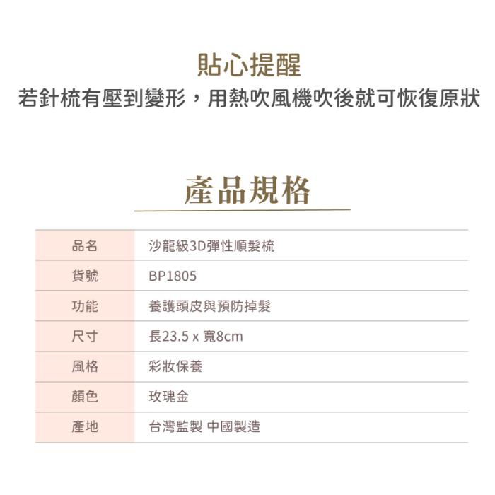 | 商品名稱/包裝內容規格 | 妝漾 沙龍級 3D彈性順髮梳(2入組) |