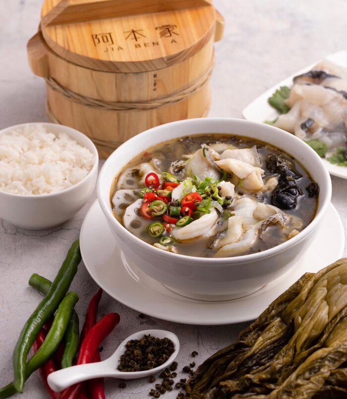 酸菜鹹香甘味,酸香開胃的湯頭有著藤椒香氣,