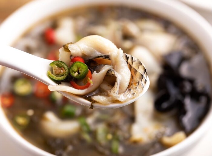 | 內容物(完整成份/食品添加物) | 烏鱧魚(大陸)、酸菜(台灣)、紅辣椒、藤椒、白胡椒粉、老薑、大蒜、醃辣椒、 蓮藕、乾木耳(黑耳仔)、米酒、鹽、鮮雞高湯、雞粉、大豆油、豬脂(台灣)。 |
