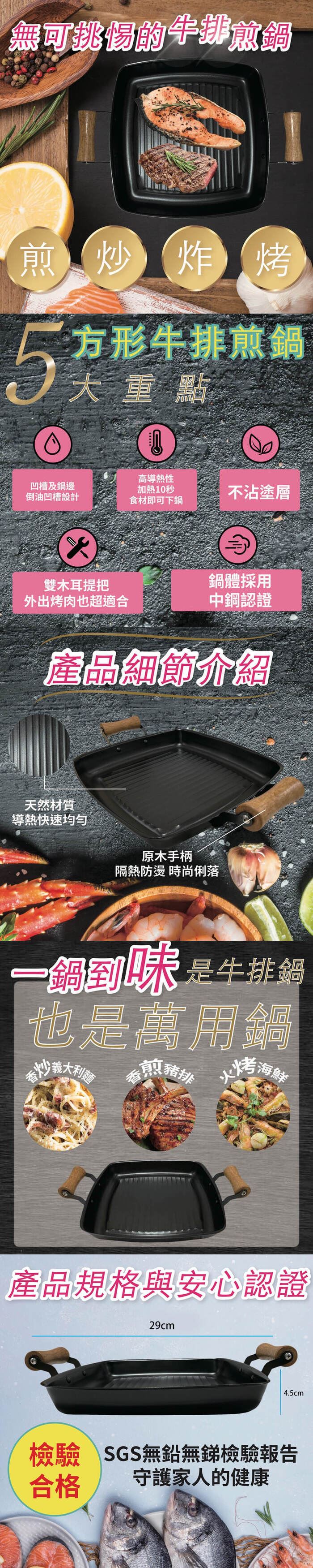 | 商品名稱 | 【金德恩】霸氣超大超厚 方型雙柄牛排平底煎鍋 |