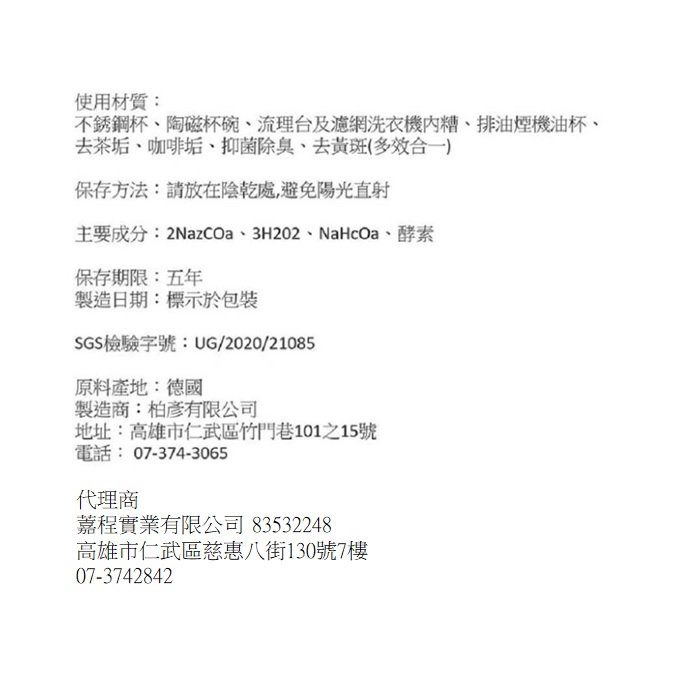 清潔不鏽鋼杯、陶瓷杯碗、流理台、濾網、洗衣機內槽、排油煙機、油杯、去茶垢、咖啡垢、去黃斑
