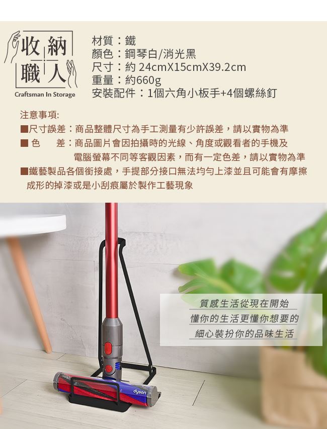 | 內容物 | 吸塵器架+1個六角小板手+4個螺絲釘 |
