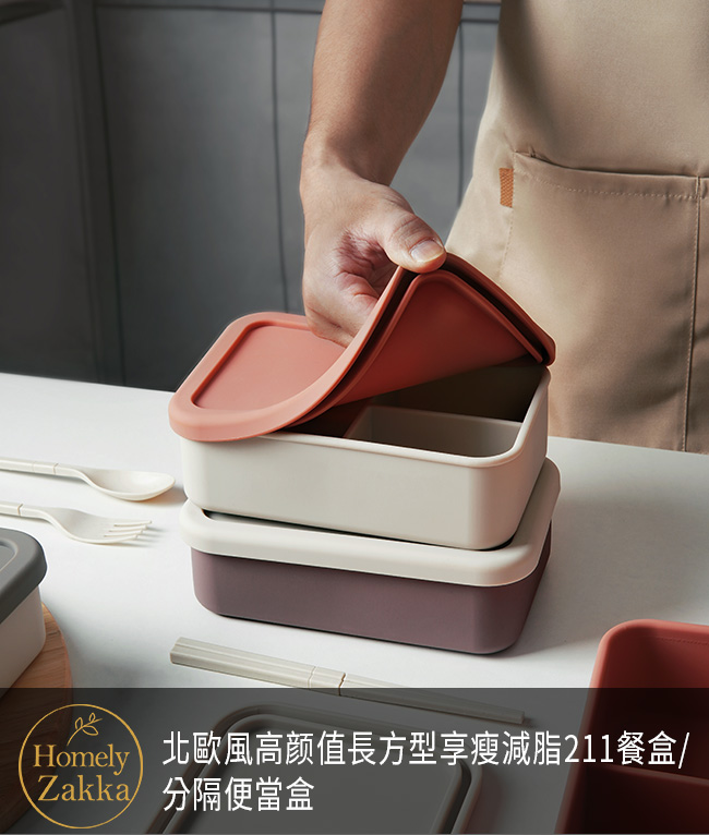 | 商品名稱 | 【Homely Zakka】北歐風高颜值撞色長方型享瘦減脂211餐盒/分隔便當盒_2色一組 |