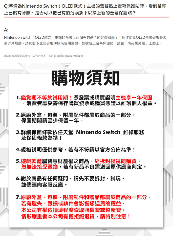 ● 退貨:您所購買的商品依法享有七天商品鑑賞期的權利,請注意:商品鑑賞期並無提供商品體驗服務。退貨時,退回商品必須是全新狀態且完整包裝,請務必保持商品、附件、包裝、廠商紙箱及所有附隨文件或資料之完整性。有關退貨詳細說明請參常見問題「退款退貨」說明。