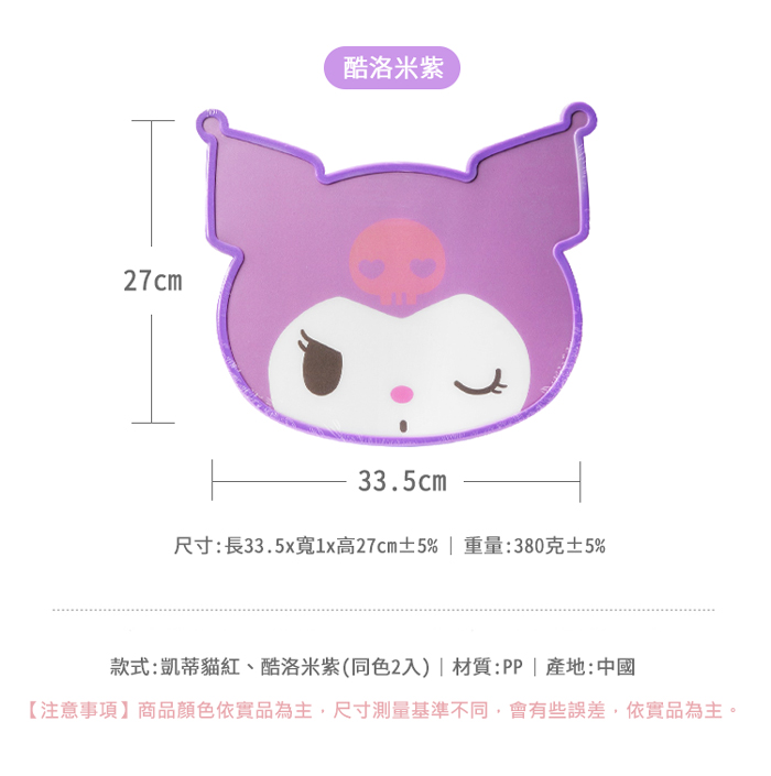 | 內容物 | 砧板 二片組 (A.凱蒂貓紅x2 B.酷洛米紫x2) | |