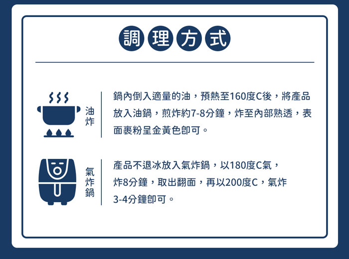 | 保存方法 | 請置於-18℃冷凍保存(一般家庭冰箱,冷凍僅約-18°C,建議購買後盡早食用。有別於業務型-24°C冷凍設備條件,將無法長期儲存。) |