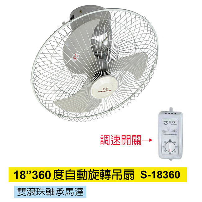 | 商品名稱 | 【東亮】18吋360度天花板旋轉吊扇 S-18360 |