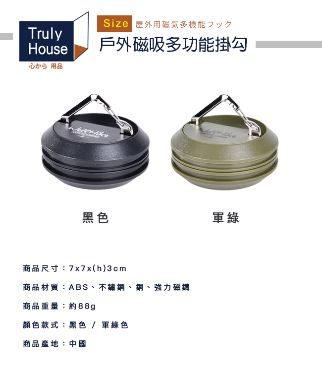 | 【商品名稱或型號】 | 【Truly House】軍風限定 戶外磁吸多功能掛勾 |