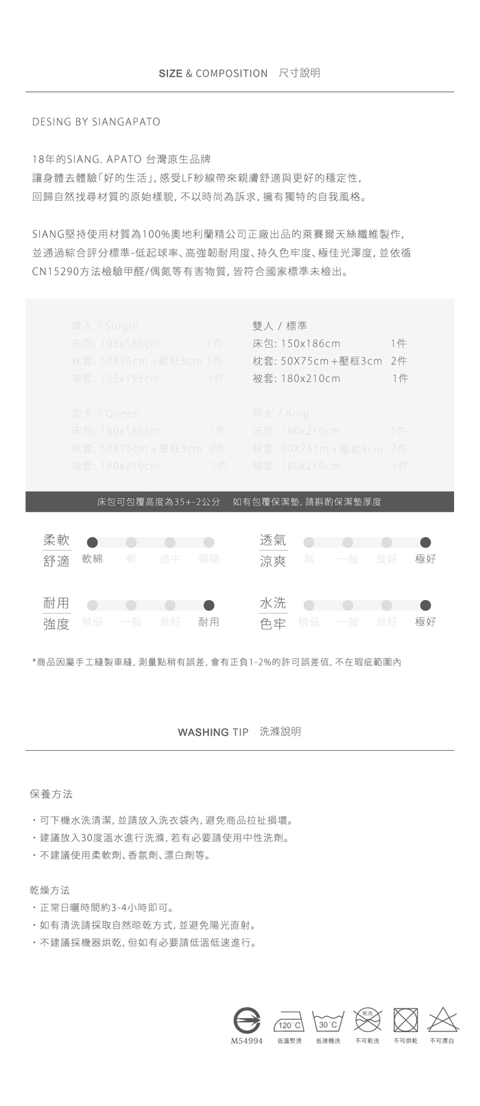 正廠授權100% Tencel 60支天絲™ ,吸濕透氣
