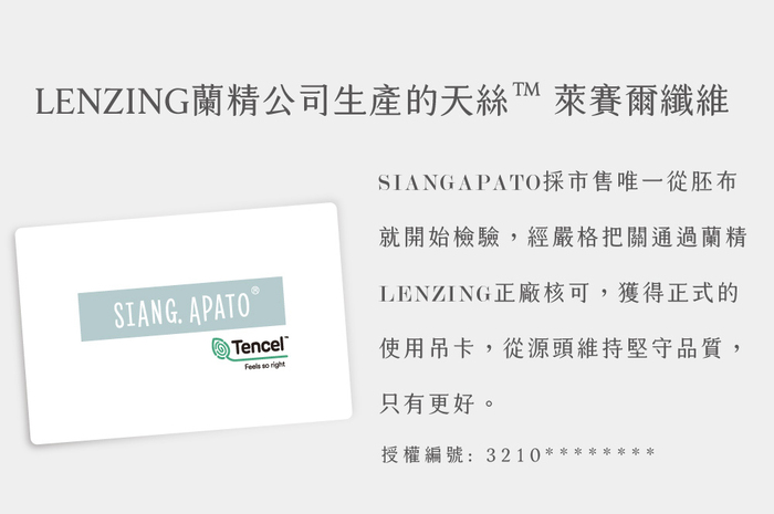 正廠授權100% Tencel 60支天絲™ ,吸濕透氣