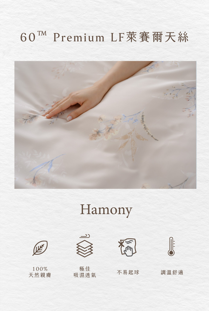 | 商品名稱 | 100%60支天絲 薄被套床包組4件組-Harmony(加大) |