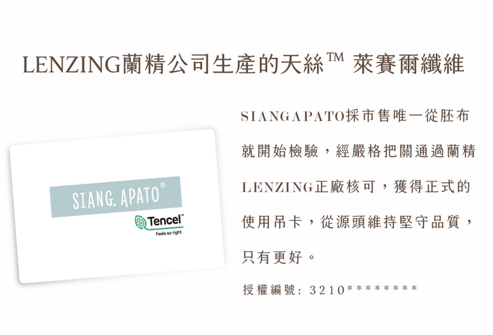 正廠授權100% Tencel 60支天絲™ ,吸濕透氣
