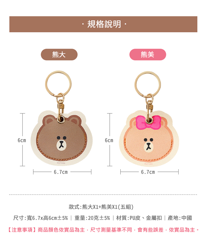 | 內容物 | 鑰匙圈熊大x5+鑰匙圈熊美x5 |