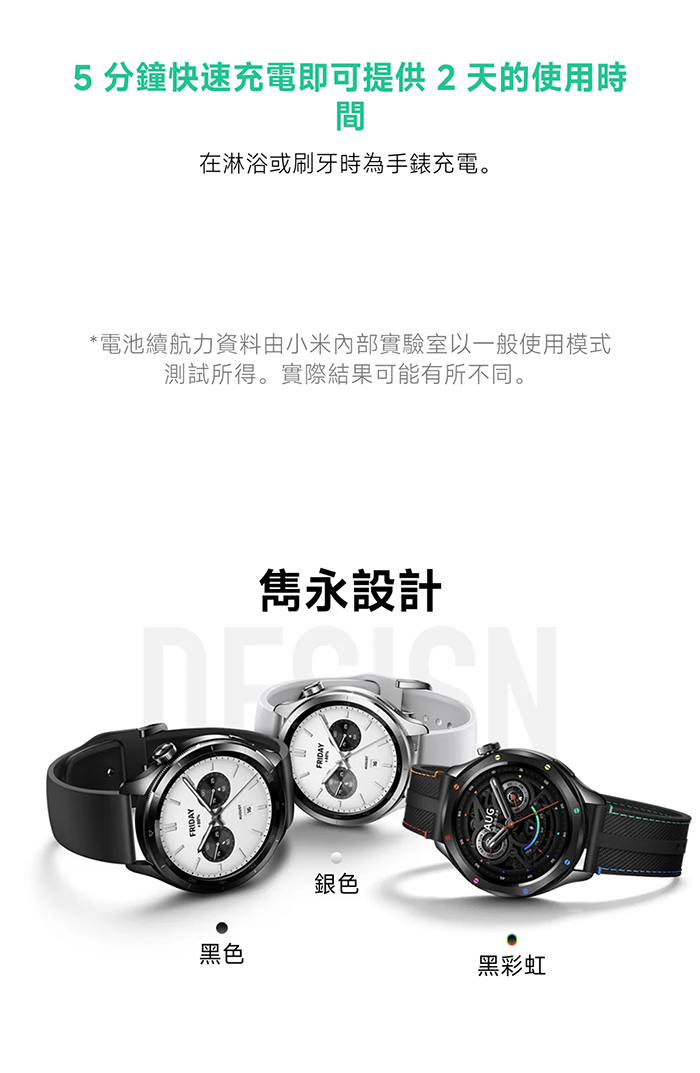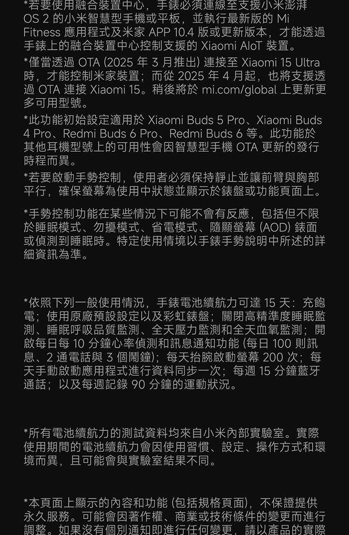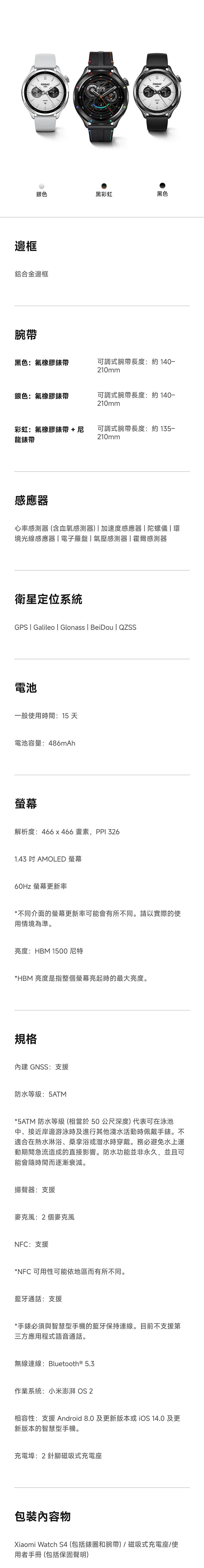 | 內容物 | Xiaomi Watch S4 (包括錶圈和腕帶) / 磁吸式充電座/使用者手冊 |