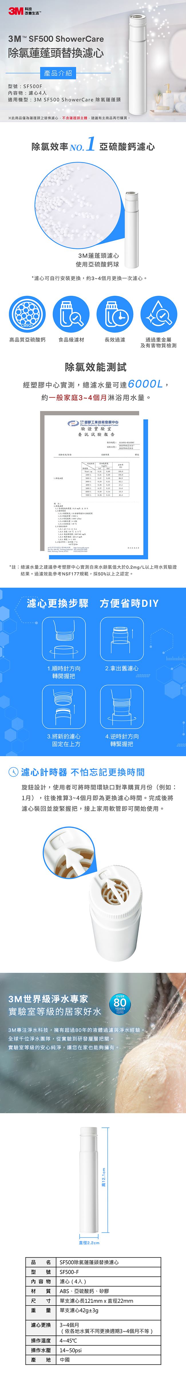 | 商品名稱 | 3M SF500 除氯蓮蓬頭替換濾心-四入 |