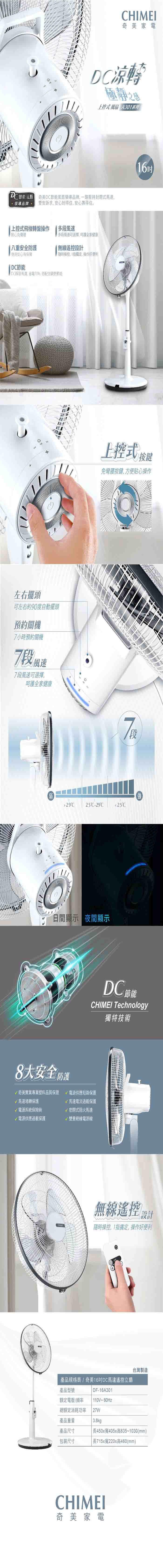 | 商品名稱 | 【CHIMEI奇美】16吋DC上控式轉盤無線搖控風扇 DF-16A301 |