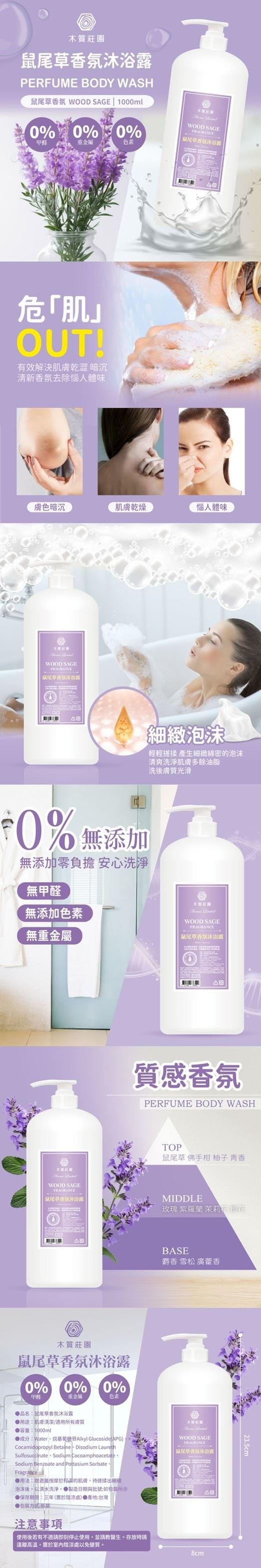 | 商品名稱/包裝內容規格 | 木質莊園-鼠尾草香氛沐浴露-1000ml [12瓶組] |