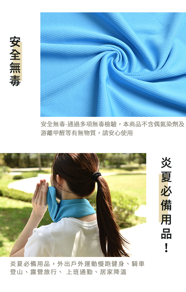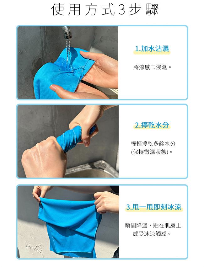 加水、擰乾、輕輕甩動,瞬間冰涼降溫的涼爽體驗