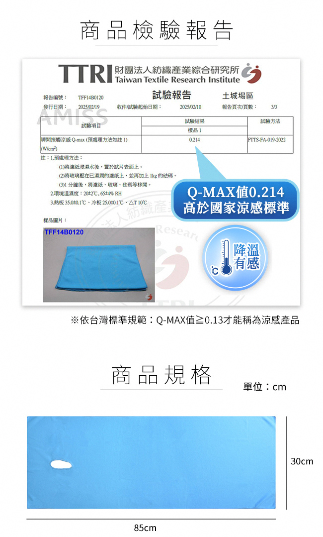國家Q-MAX涼感認證-Q-MAX涼感值高達0.214