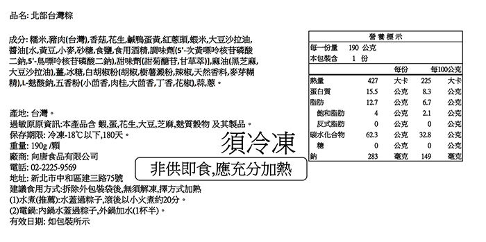 | 商品名稱 | 【南門市場立家】北部台灣粽50顆(190g/顆) |