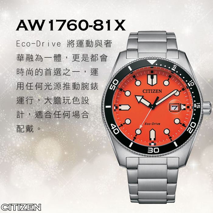 CITIZEN 星辰 Eco-Drive光動能潮男鋼帶錶 AW1760-81X
