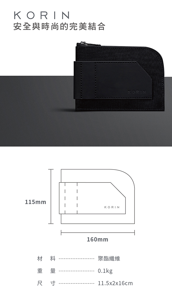 | 包裝內容/商品規格 | 包裝內容物:KORIN RFID防盜拷 星雲錢包*1 材 質 :聚酯纖維 重 量 :100g 商品尺寸 :11.5x2x16cm 產 地 :中國大陸 |