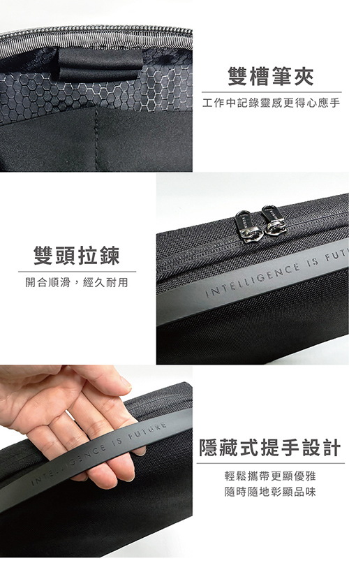 彈性收納夾層+雙槽筆夾 穩穩固定