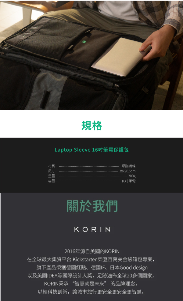 | 商品名稱 | KORIN Laptop Sleeve 16吋筆電保護包(桃品國際公司貨) |