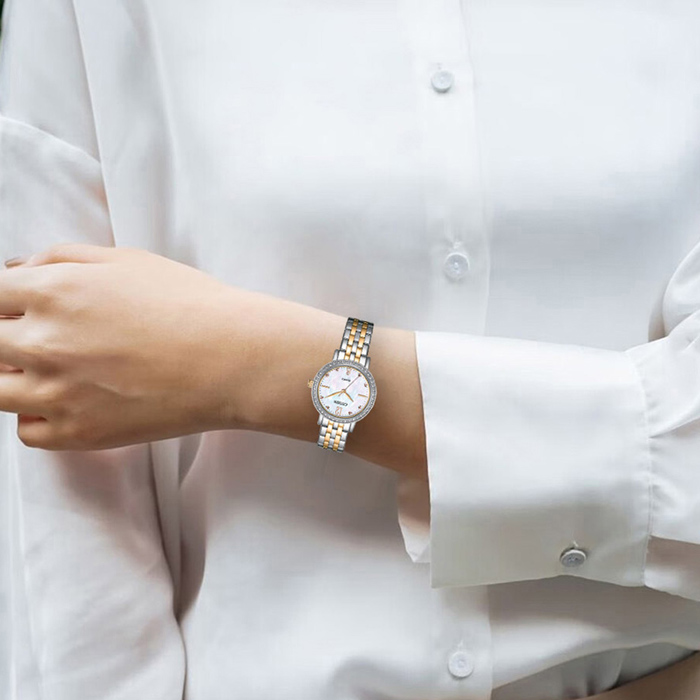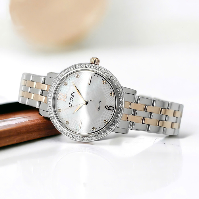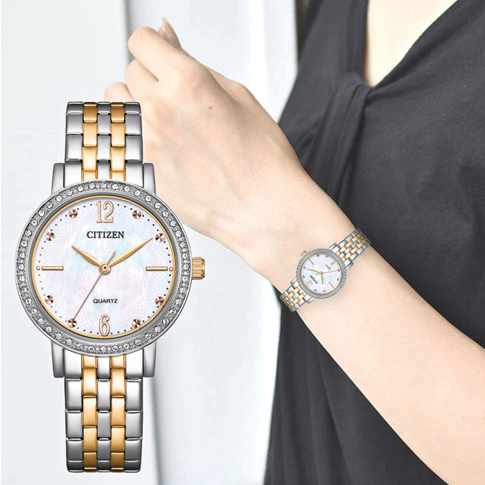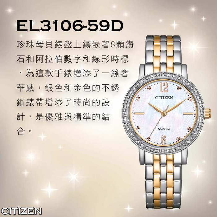CITIZEN 星辰 時尚珍珠母貝鋼帶女錶 EL3106-59D