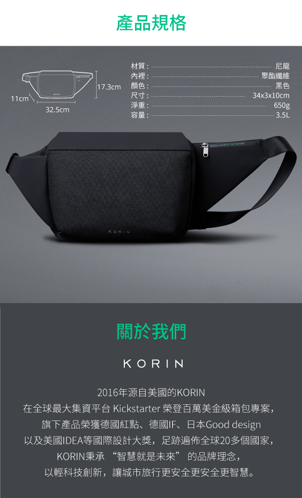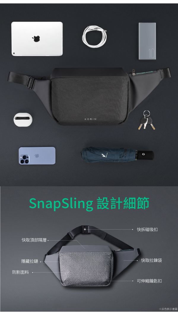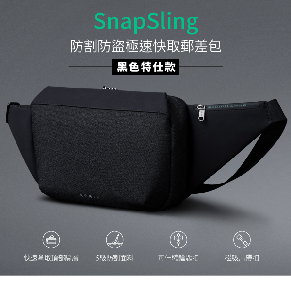 | 商品名稱 | KORIN SnapSling 防割防盜極速快取郵差包-黑色特仕款(桃品國際公司貨) |