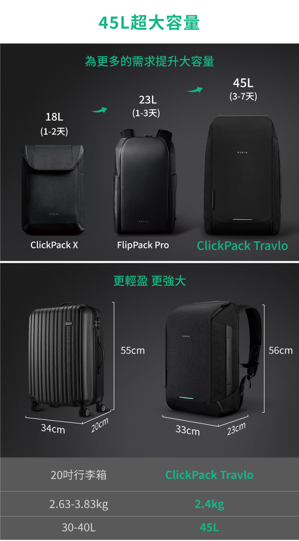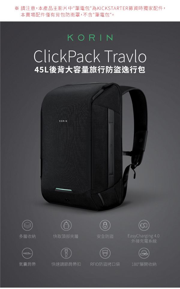 | 商品名稱 | KORIN ClickPack Travlo 45L後背大容量旅行防盜逸行包(桃品國際公司貨) |