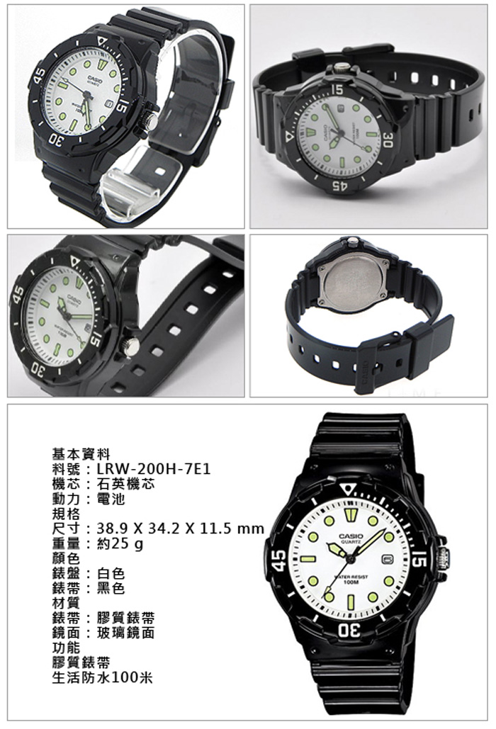 【CASIO 卡西歐】新一代潛水風格概念休閒錶(LRW-200H-7E1)