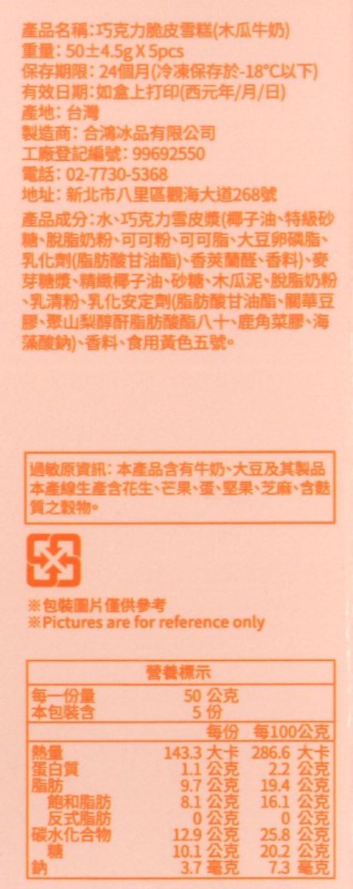 | 商品名稱 | 北回 巧克力脆皮雪糕(木瓜牛奶) 5入 |