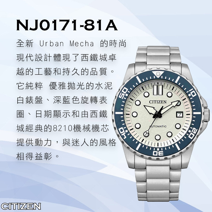CITIZEN 星辰 自動上鍊機械鋼帶錶 NJ0171-81A