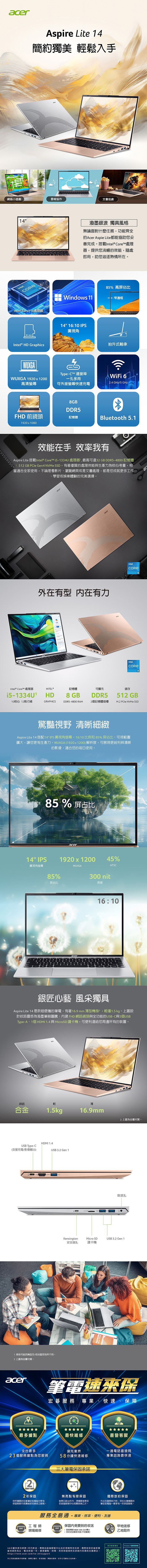 | 【商品名稱或型號】 | 【Acer 宏碁】Aspire AL14-52M-54QL 14吋文書筆電 - 銀 |