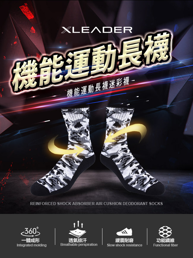 | 【商品名稱】 | 【Leader X】XT-01迷彩機能運動長襪(厚底升級款) - 4色可選 [1雙組] |